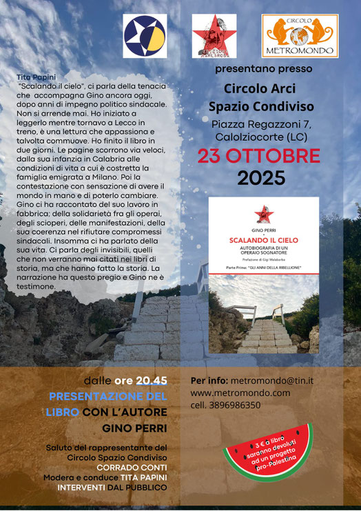 "Scalando il cielo", ci parla della tenacia che accompagna Gino ancora oggi, dopo anni di impegno politico sindacale.